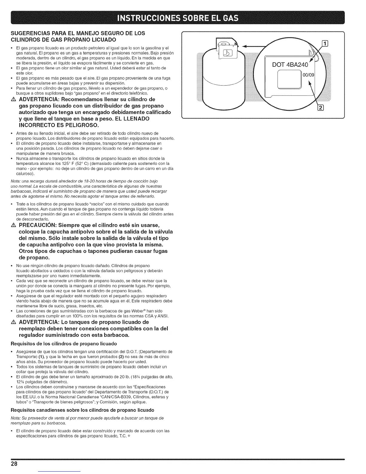 El cilindro de propano licuado debe estar construido y marcado de acuerdo con las