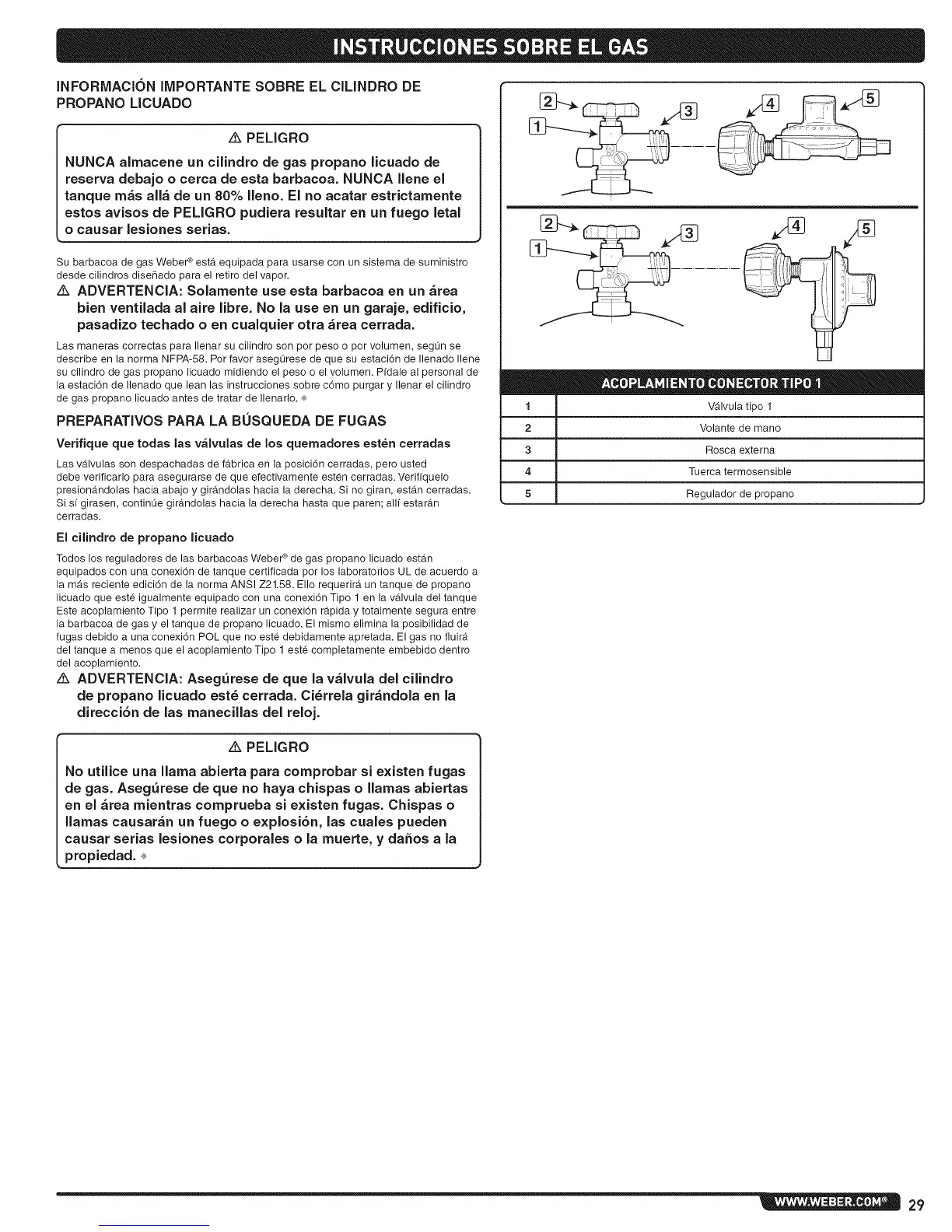 Todos losreguladores de las barbacoas Weber¢de gas propano licuado estan
