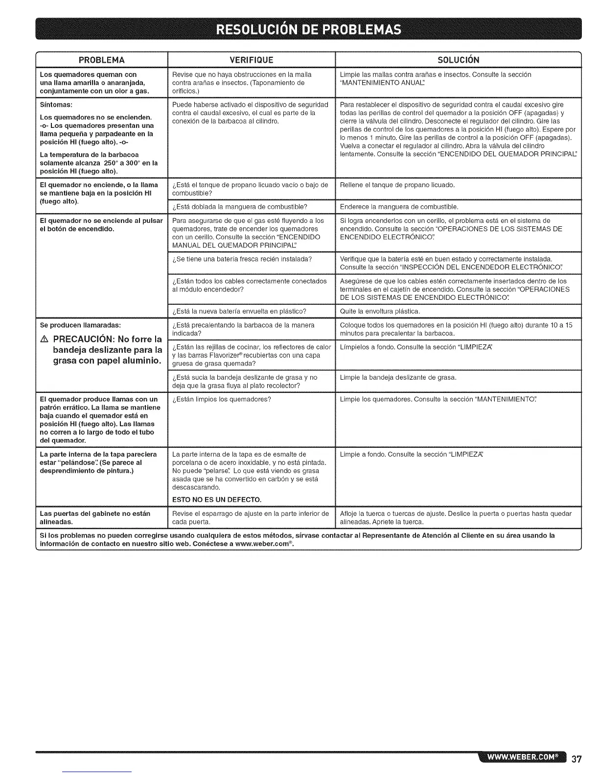 informaci6n de contacto en nuestro sitio web. Con_ctese a www.weber.com ®.