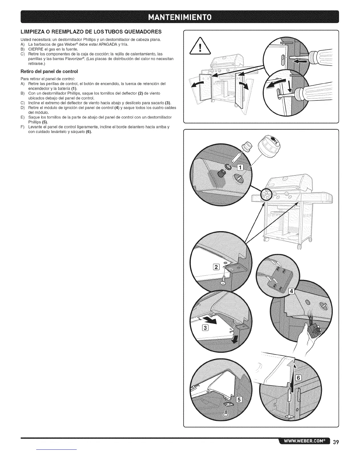 A) La barbacoa de gas Weber ¢ debe estar APAGADA y fr[a.