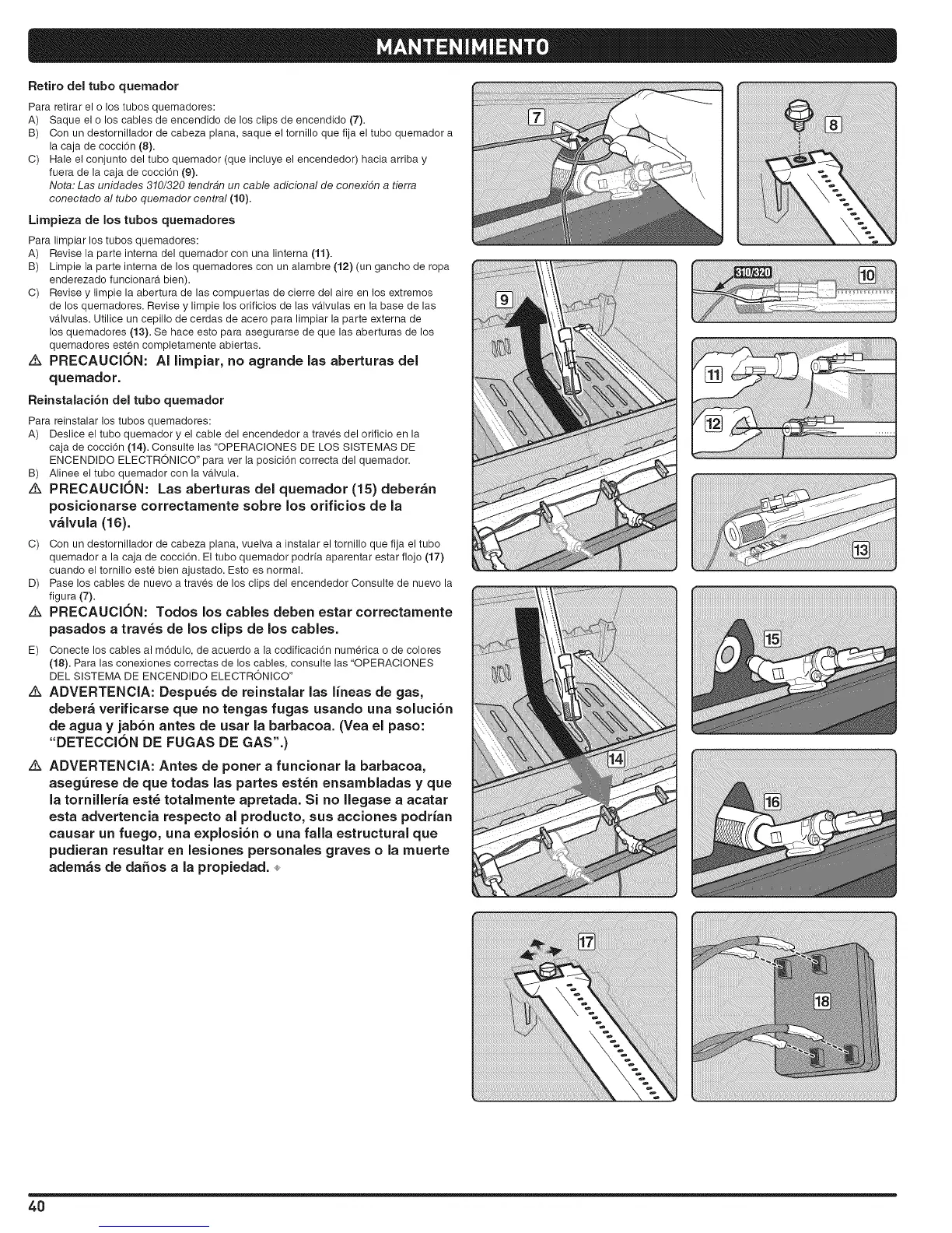 Para limpiar los tubes quemadores: