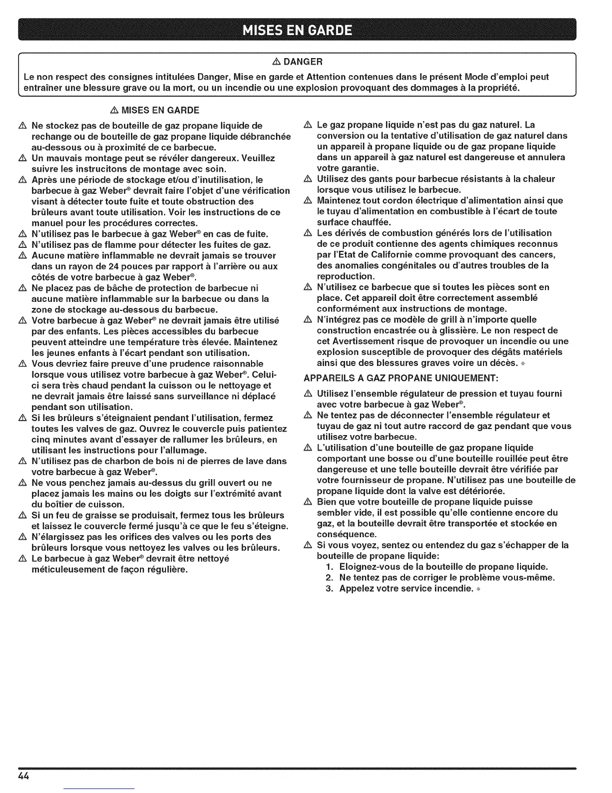 Z_ Votre barbecue a gaz Weber _ ne devrait jamais _tre utilis_