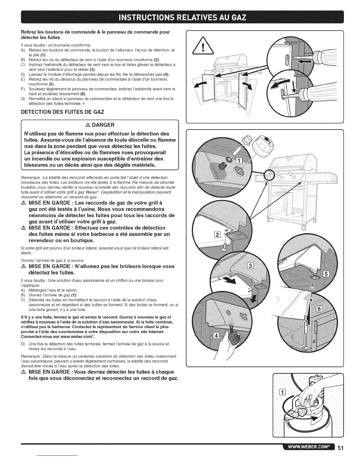 fuite avant d'utiliser votre grill a gaz Weber'. L'expedition et la manipulation peuvent
