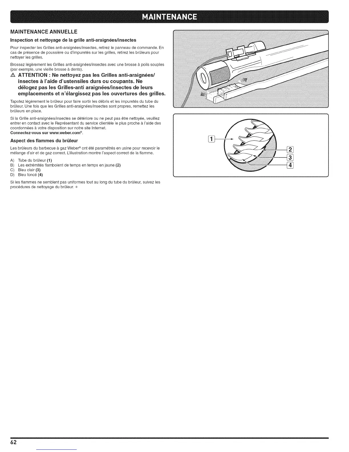 braleur. Une lois que les Grilles anti-araignees/insectessont propres, remettez les