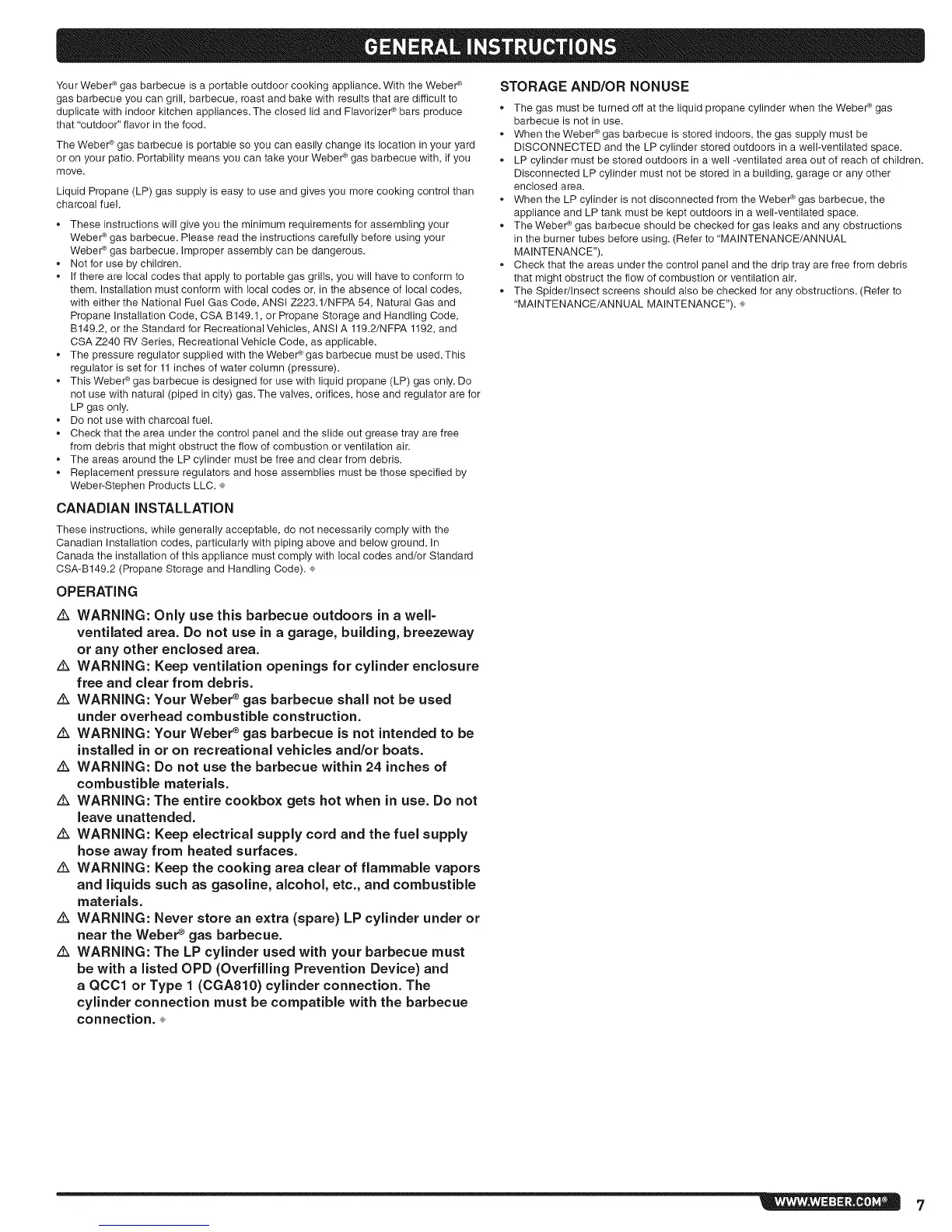 z_ WARNING: Your Weber ®gas barbecue shall not be used