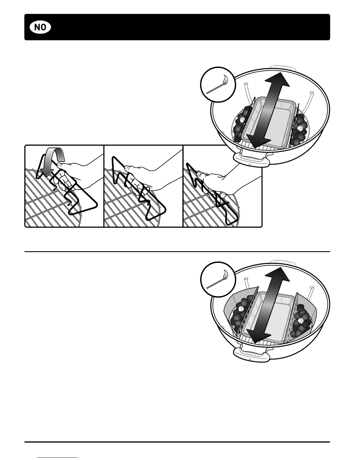 2. Plasser Char-Basket™ brikettkurvene motsatt av grillhåndtakene,