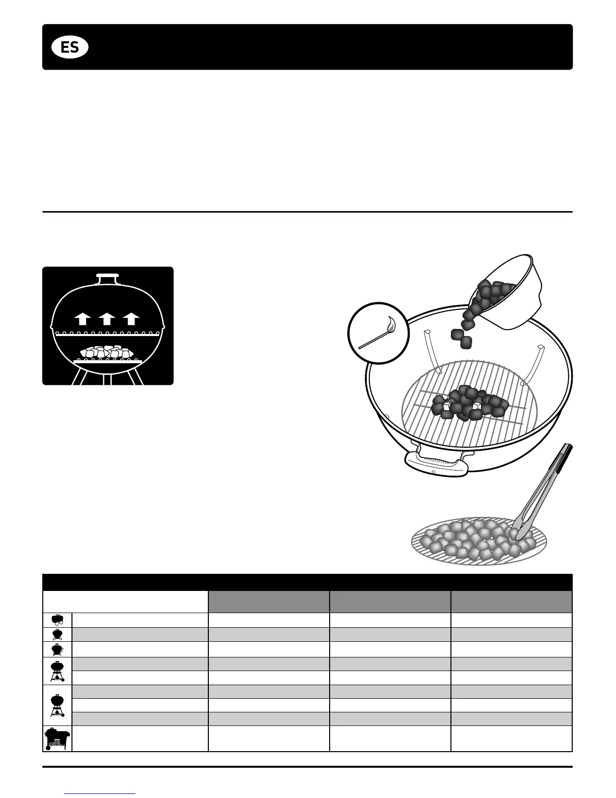 • No cocine hasta que el combustible tenga una capa de ceniza. Cuando