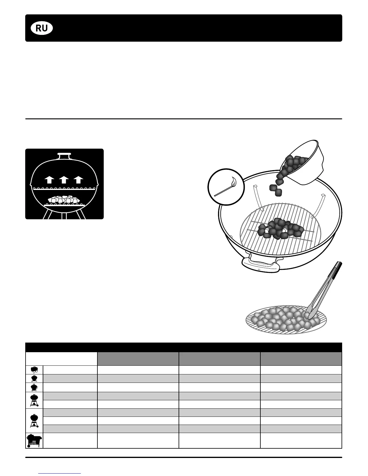 чашу, (A) входящую в комплект вашего барбекю (см. таблицу