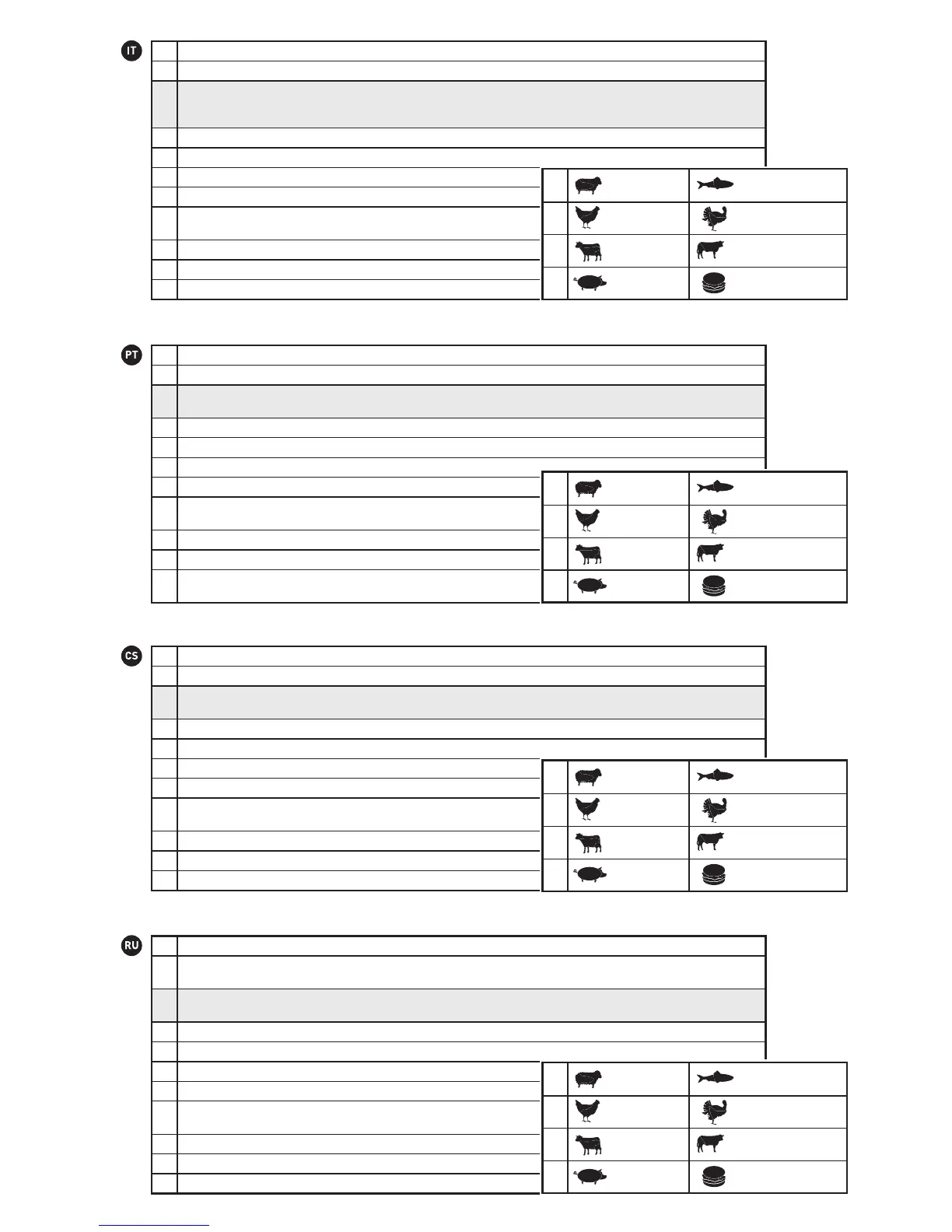 Impostazioni grado di cottura consigliato