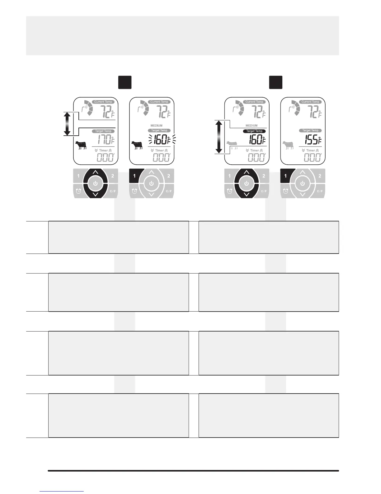Press 1 to enter Set mode. • Press UP or DOWN Buttons until desired meat icon appears.