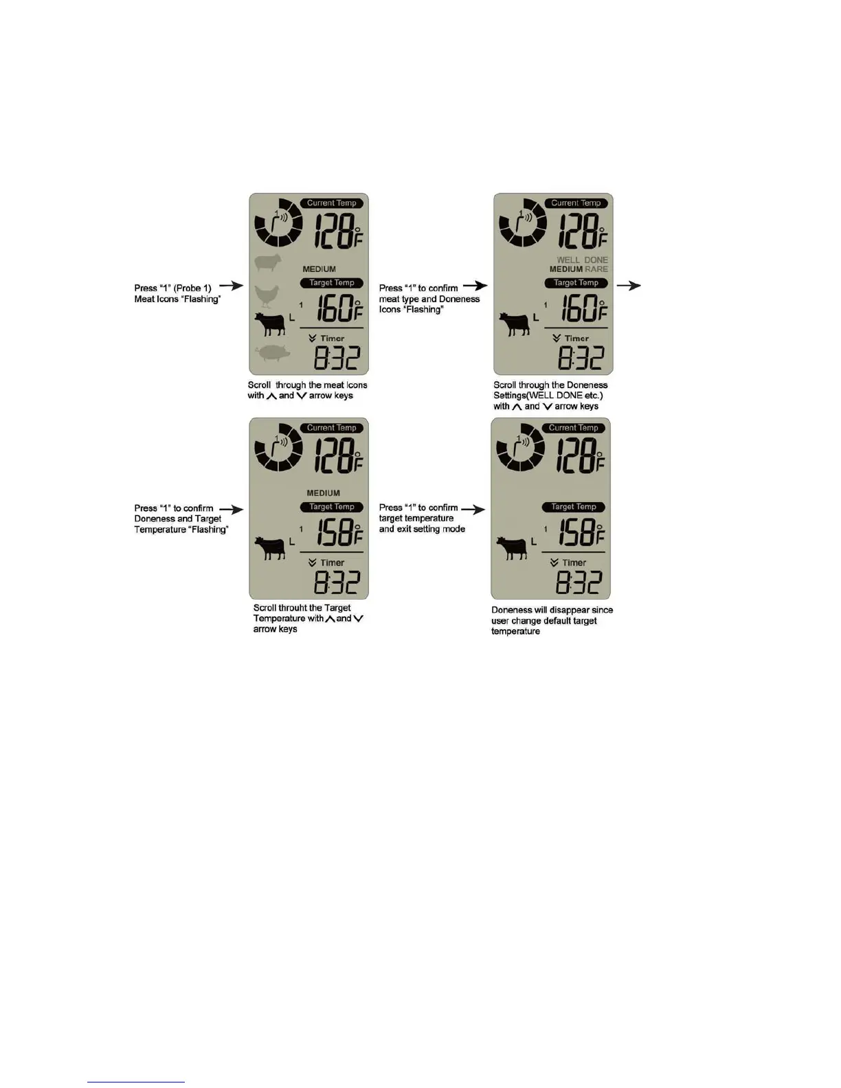 1. To set the selected food temperature for probe1 (not use default temperature):