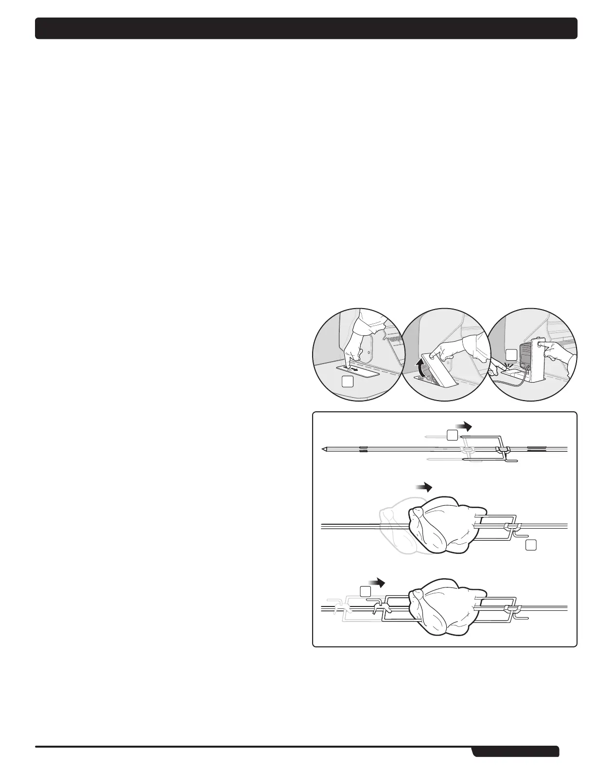 E) Glissez une autre broche sur l’axe de rotation de la rôtissoire, en vous assurant que