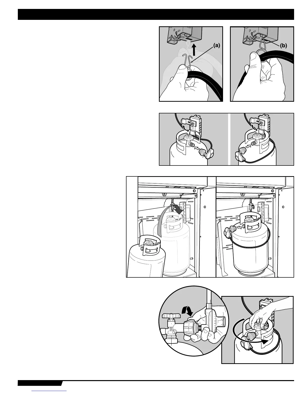 Note: This connection tightens clockwise and will not allow gas