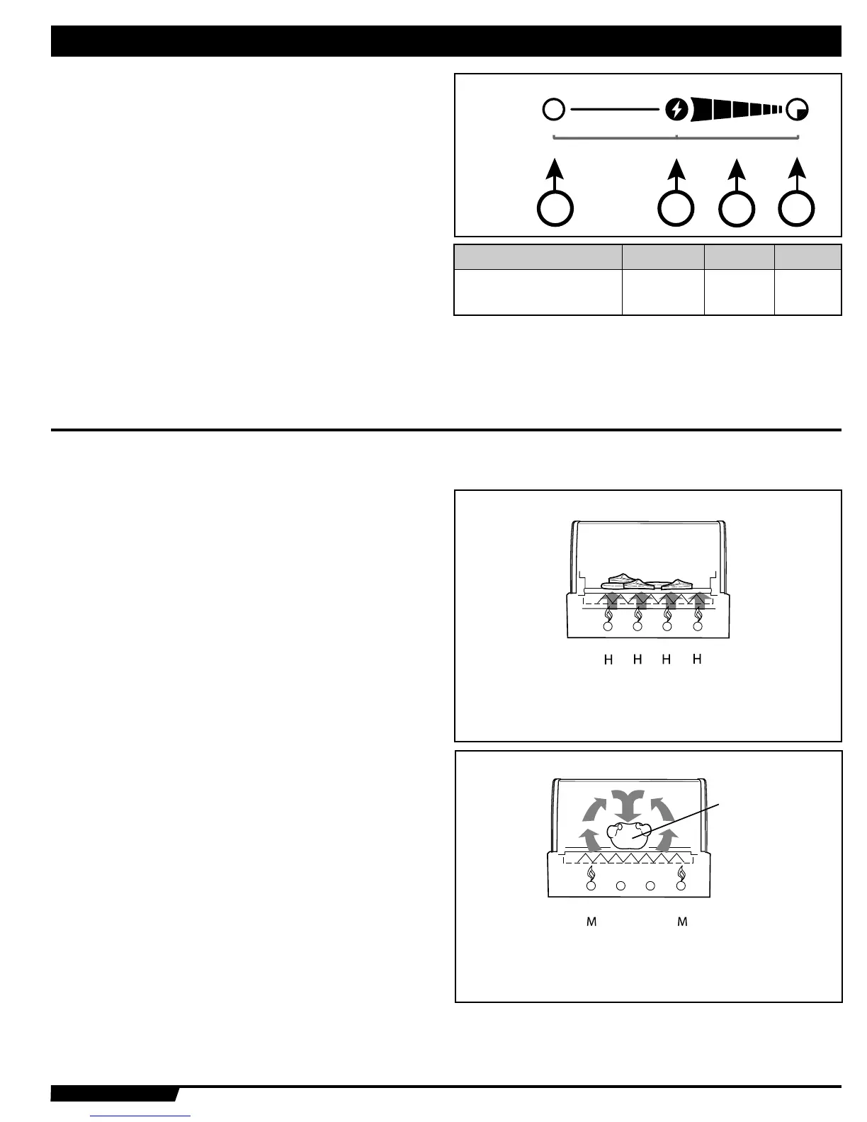 quemadores en “HI”. Luego ajuste los quemadores de cada lado de los alimentos a la