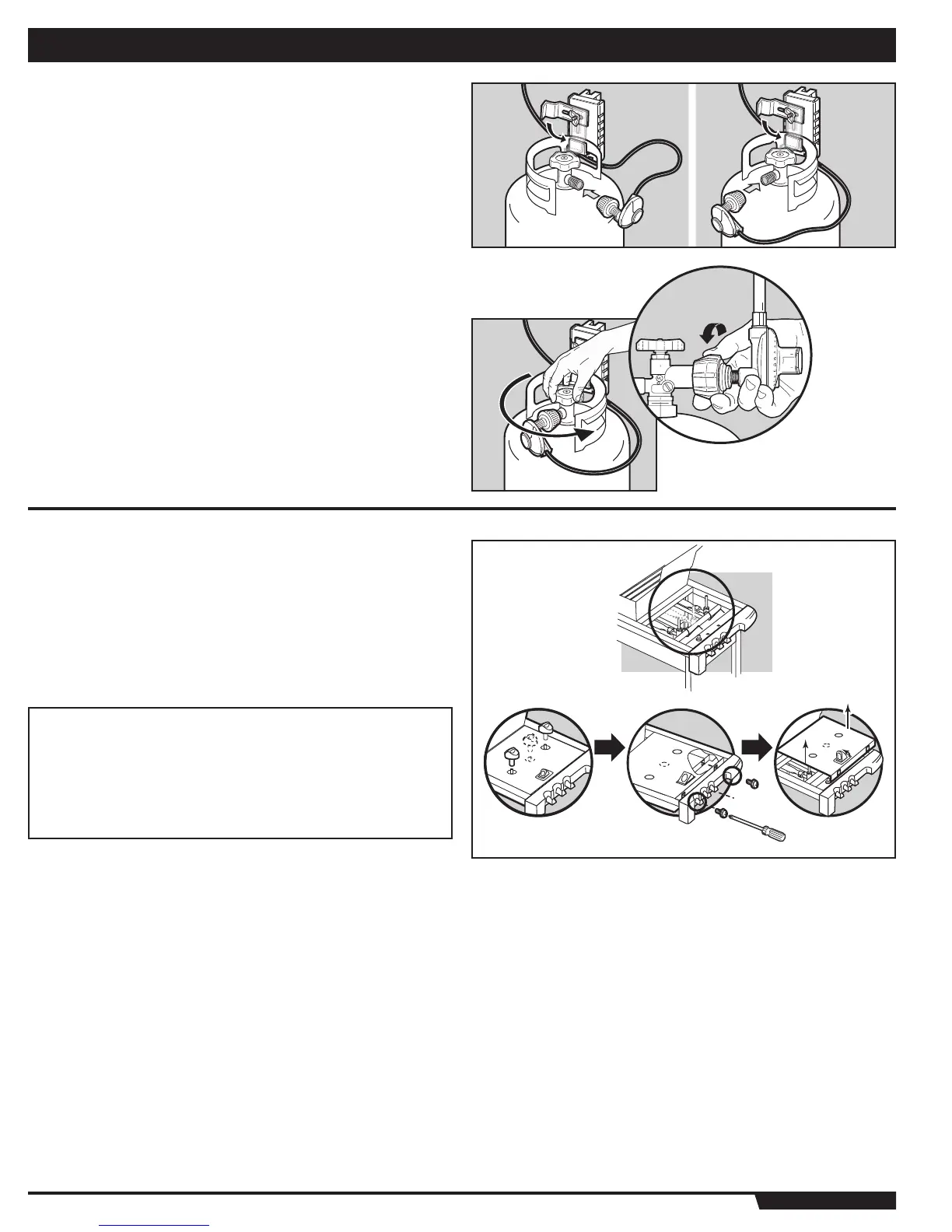 1) Tourner la bouteille de propane liquéfi é pour que l’ouverture du robinet se trouve à