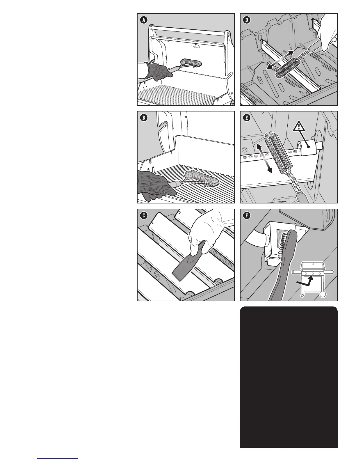 burners using a soft bristle brush (F).