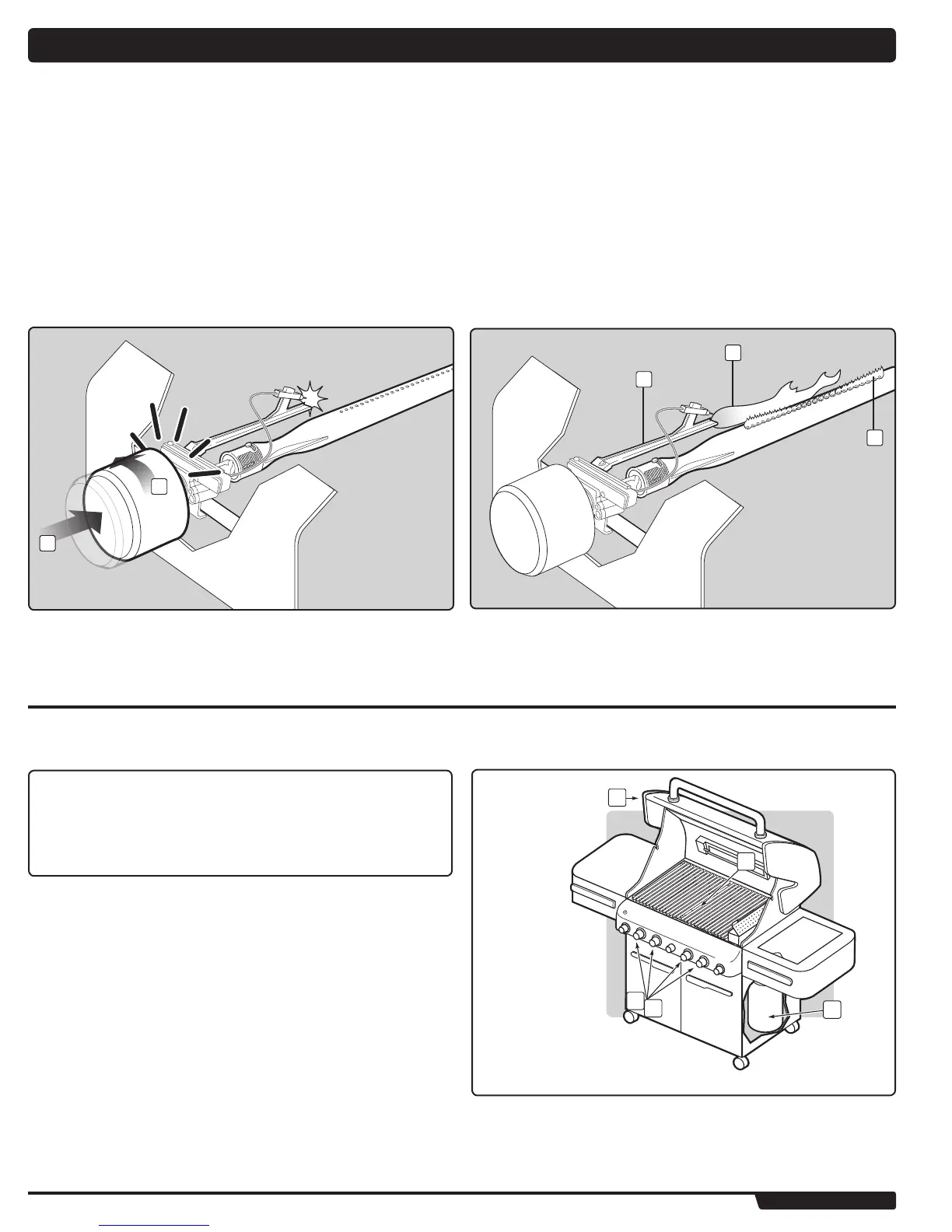 This action will generate gas flow and a spark to the burner lighting tube (C). You will hear a “snap” from the igniter. You will also see a 3˝ - 5˝ orange flame coming from the burner