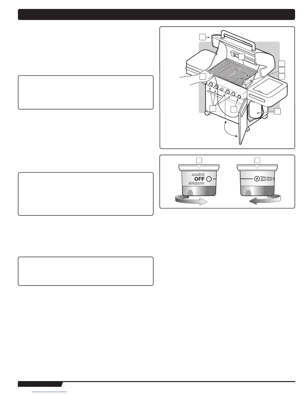H) Push smoker burner control knob in and turn to “START/HI” (8).