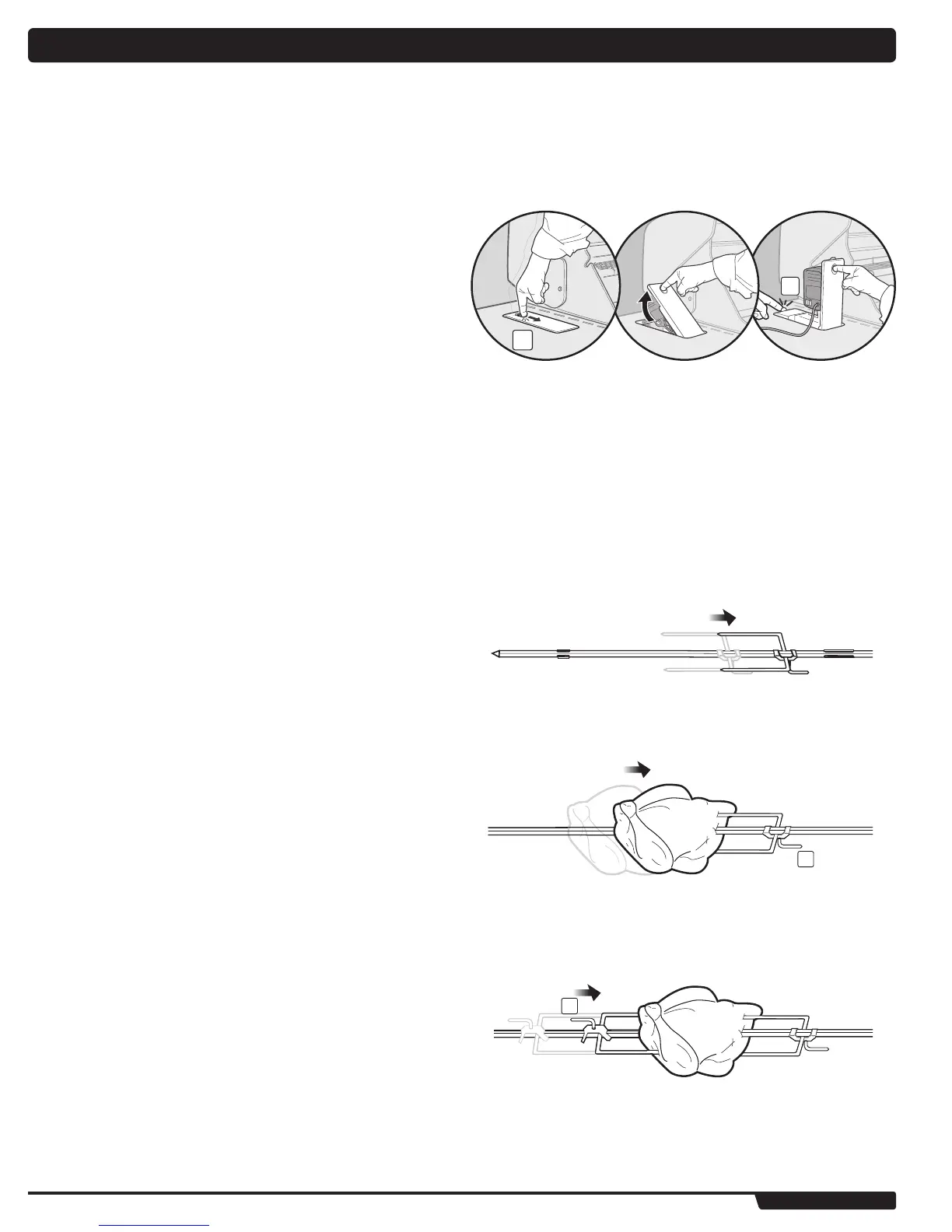 E) Deslice otra horquilla sobre el eje del asador giratorio, asegurándose de que los