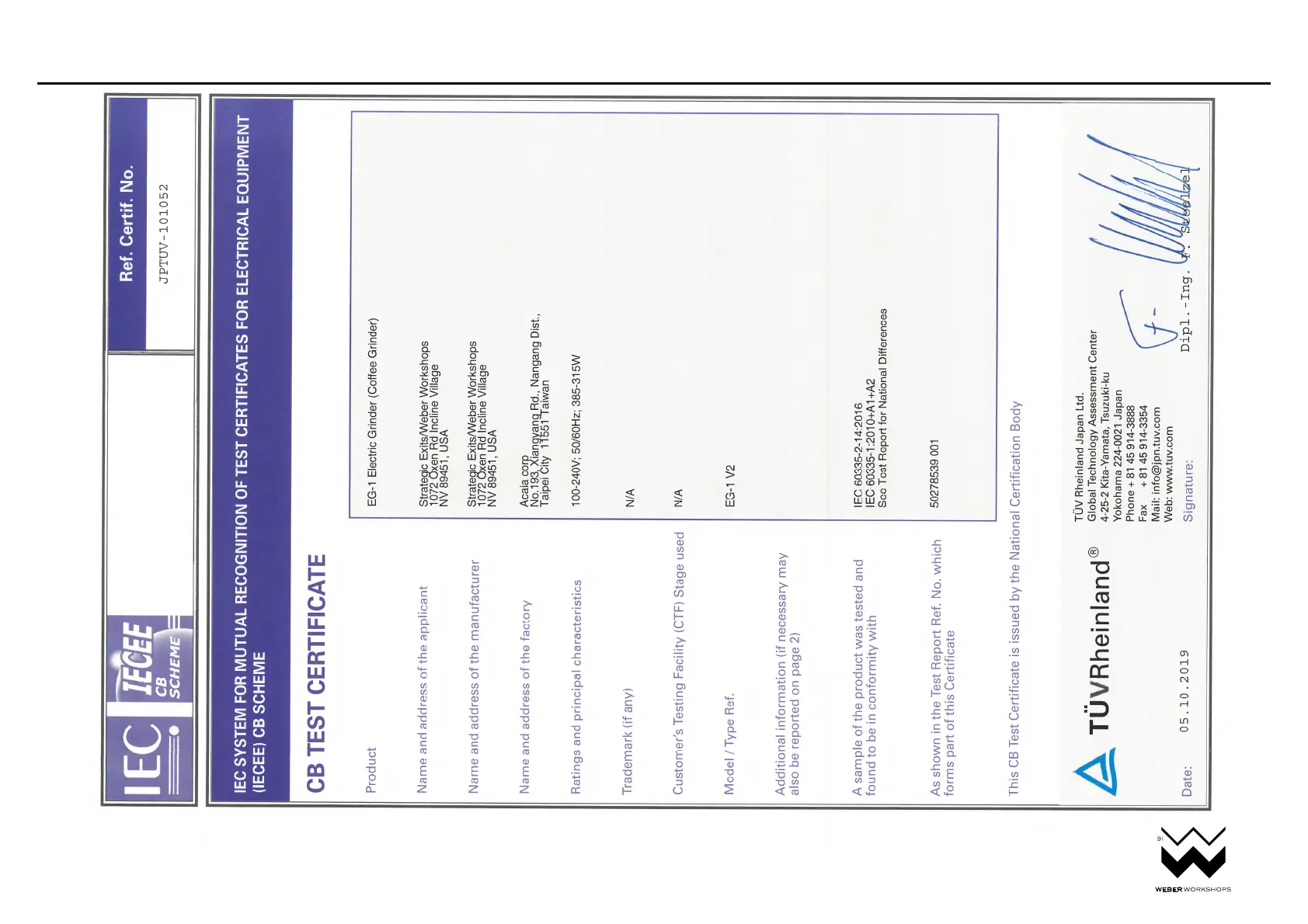 electrical certifications (CB)