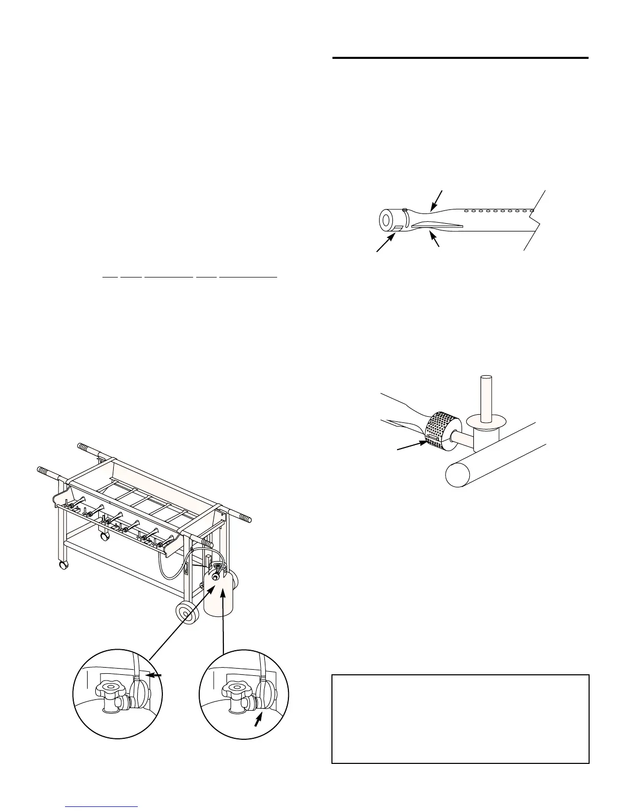 WARNING: Do not ignite burners while leak
