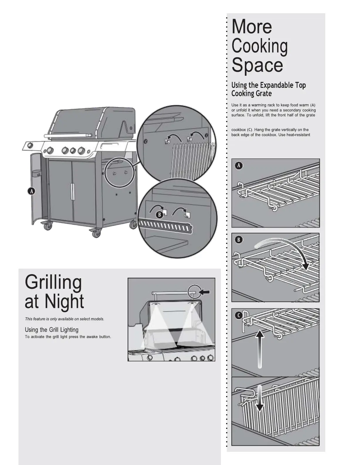 outside of the grill. Additional hooks on the inside of