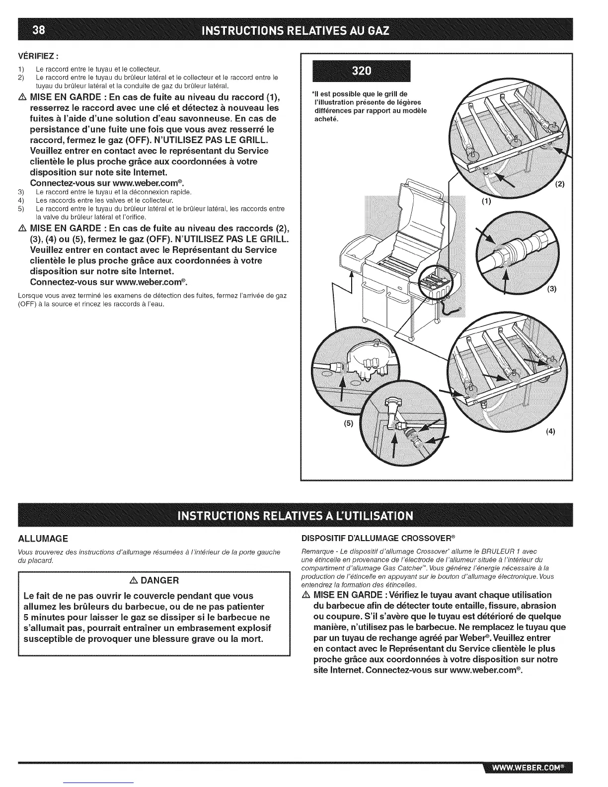 raccord, fermez le gaz (OFF). N'UTILISEZ PAS LE GRILL.