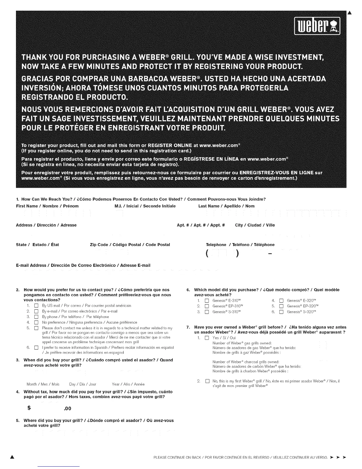 Have you ever owned a Weber _ grill before? / _.Ha tenido alguna vez antes