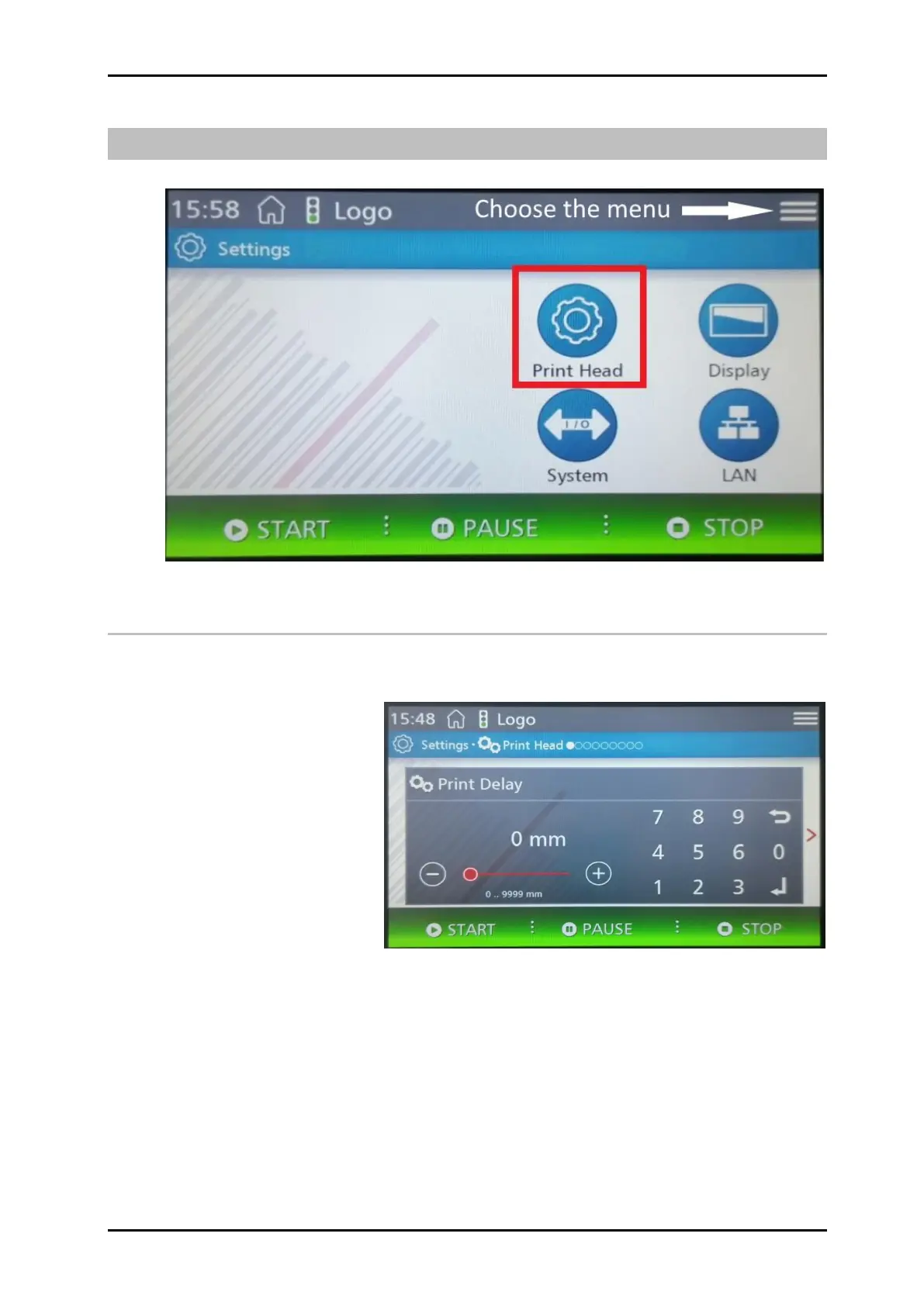 Print Head settings 40 Markoprint Integra Vivid