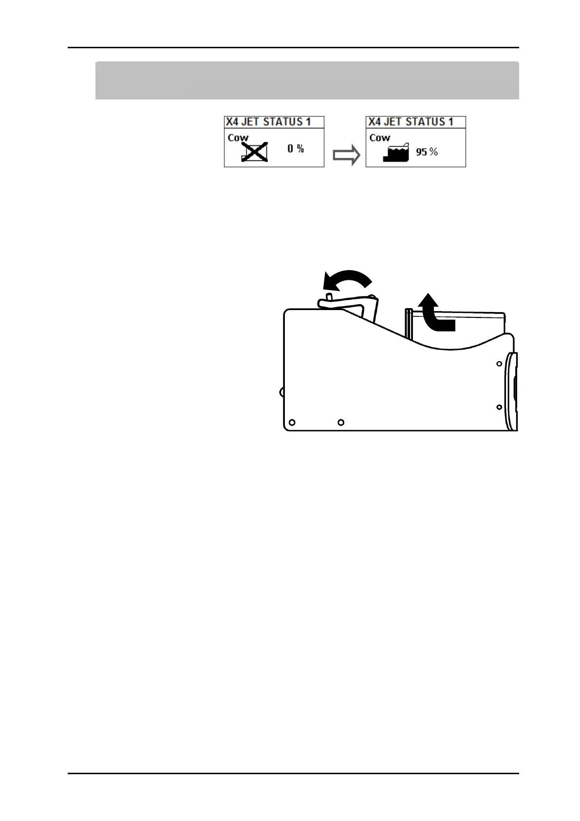 menu 1. The LED on the LX print head changes from red to green if the cartridge is