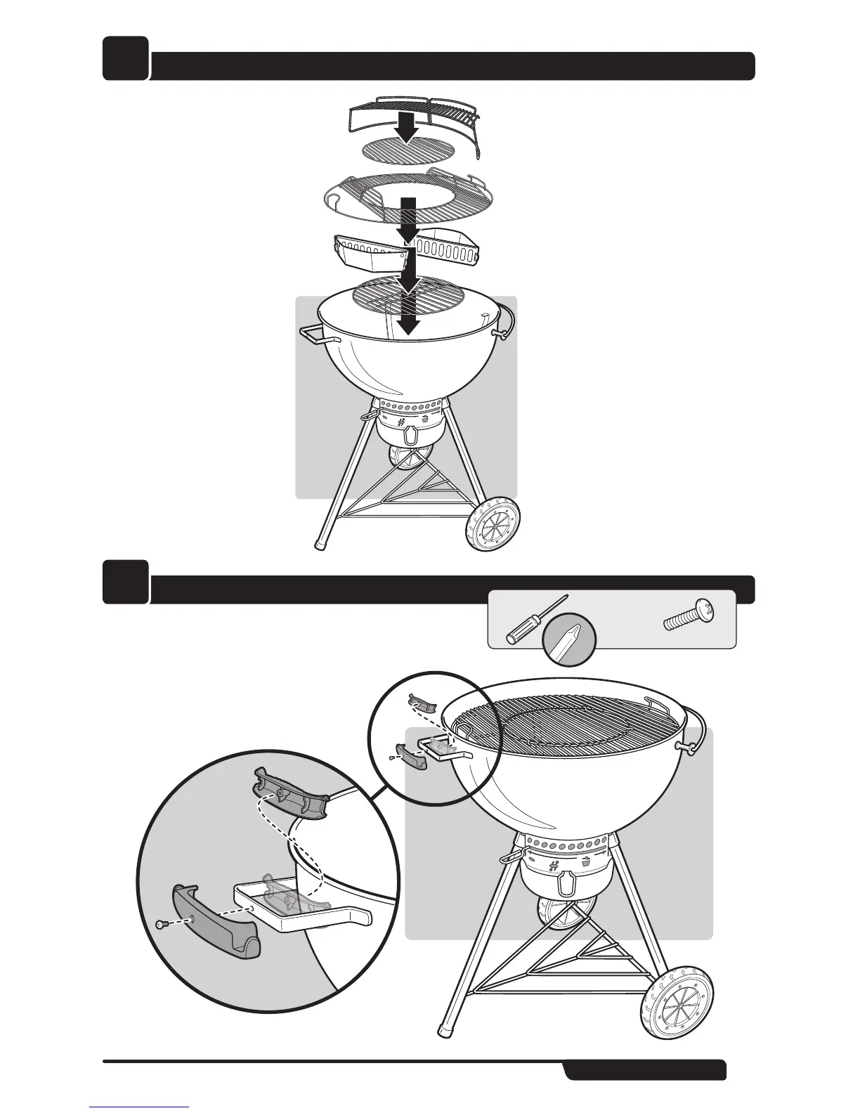 Weber MASTER-TOUCH 14501001 - Step 10: Install Grates; Step 11: Mount Lid Holder