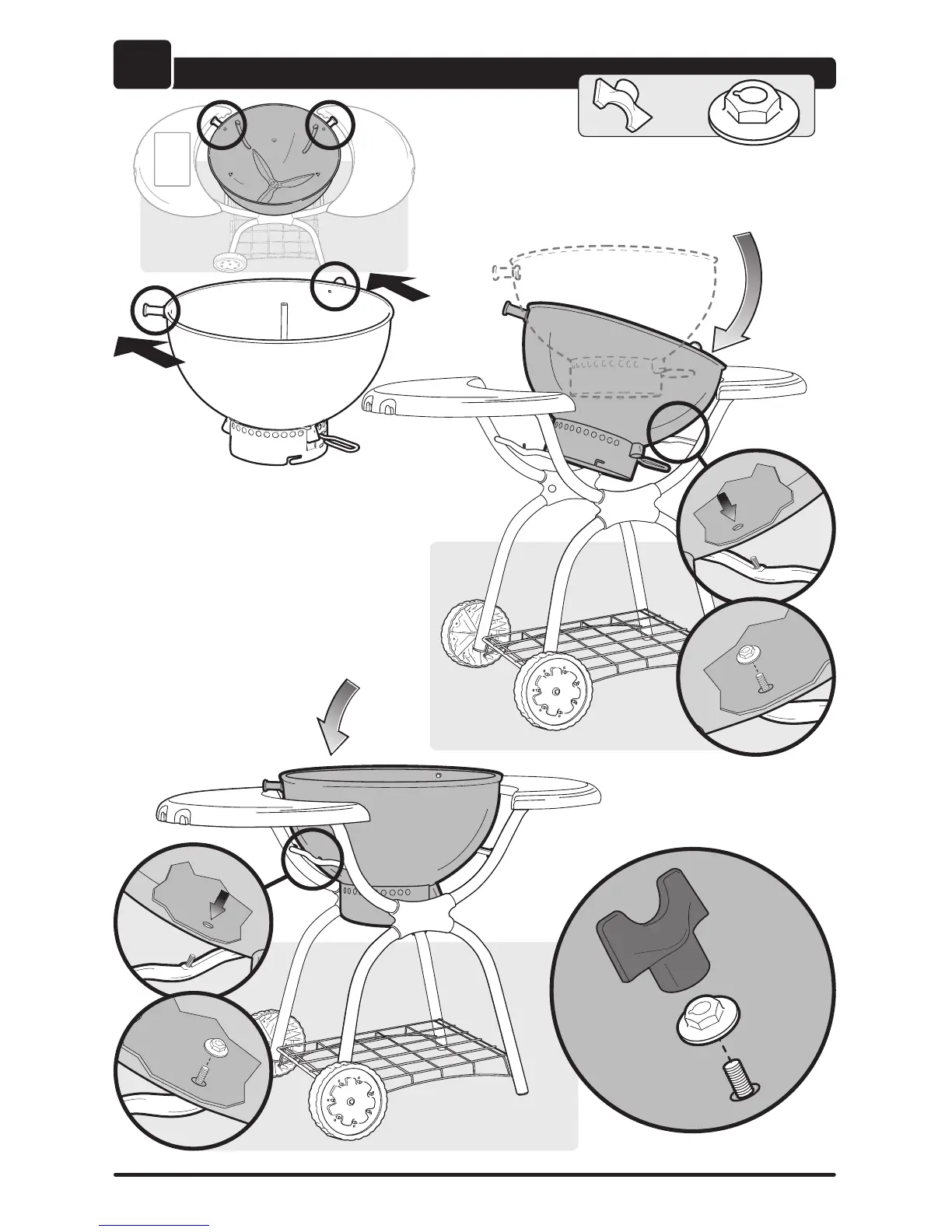 Weber One-Touch Platinum - Assembly Step 13: Attach Lid Handle and Damper; Install Lid Handle Assembly; Attach Vent Damper Assembly