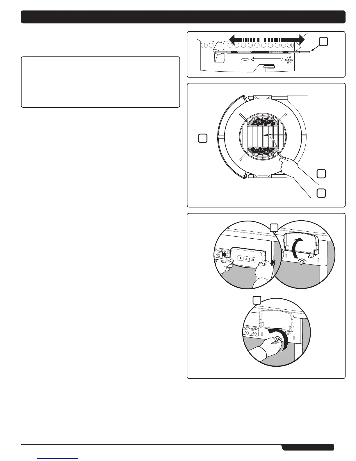 C) Posuňte držiaky Char-Baskets™ mimo horáka (2).