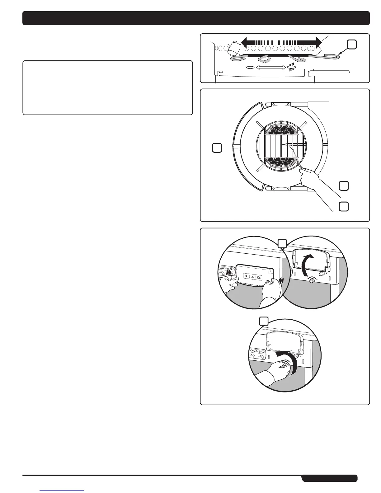 H) Mettez des gants pour barbecue et utilisez des pinces pour replacer les paniers à