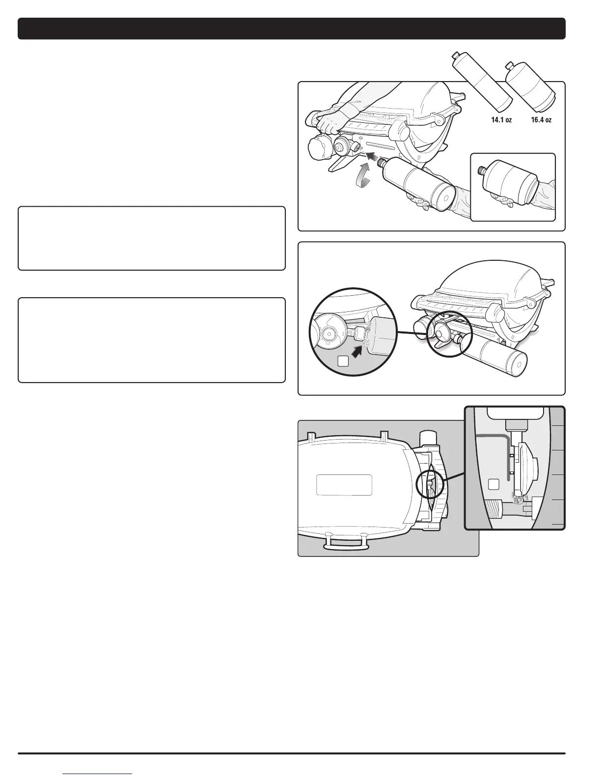 Utilisez des bouteilles de propane jetables d’une capacité de 14,1 oz. ou 16,4 oz.