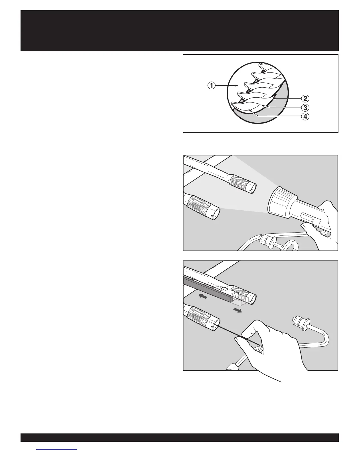 Si las llamas no tienen una apariencia pareja a lo largo del tubo quemador, siga las