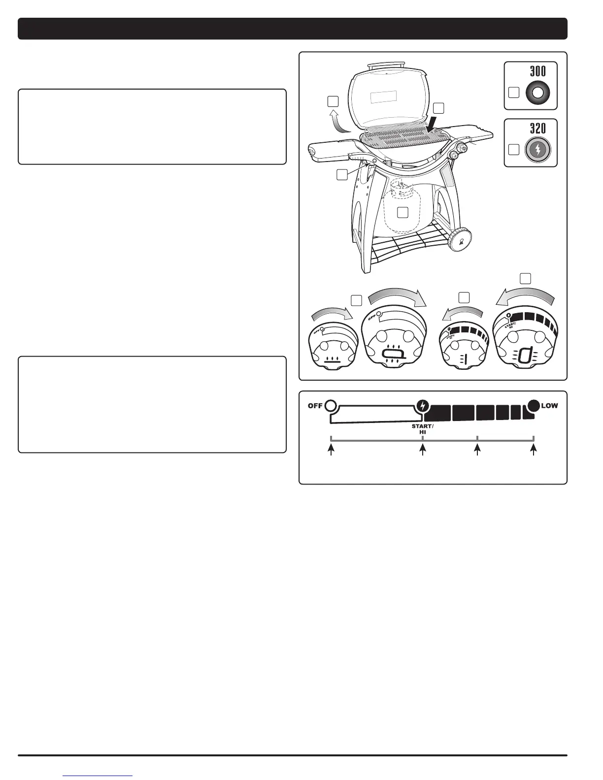 START/HI (ENCENDIDO/FUEGO ALTO) . El quemador interno será encendido