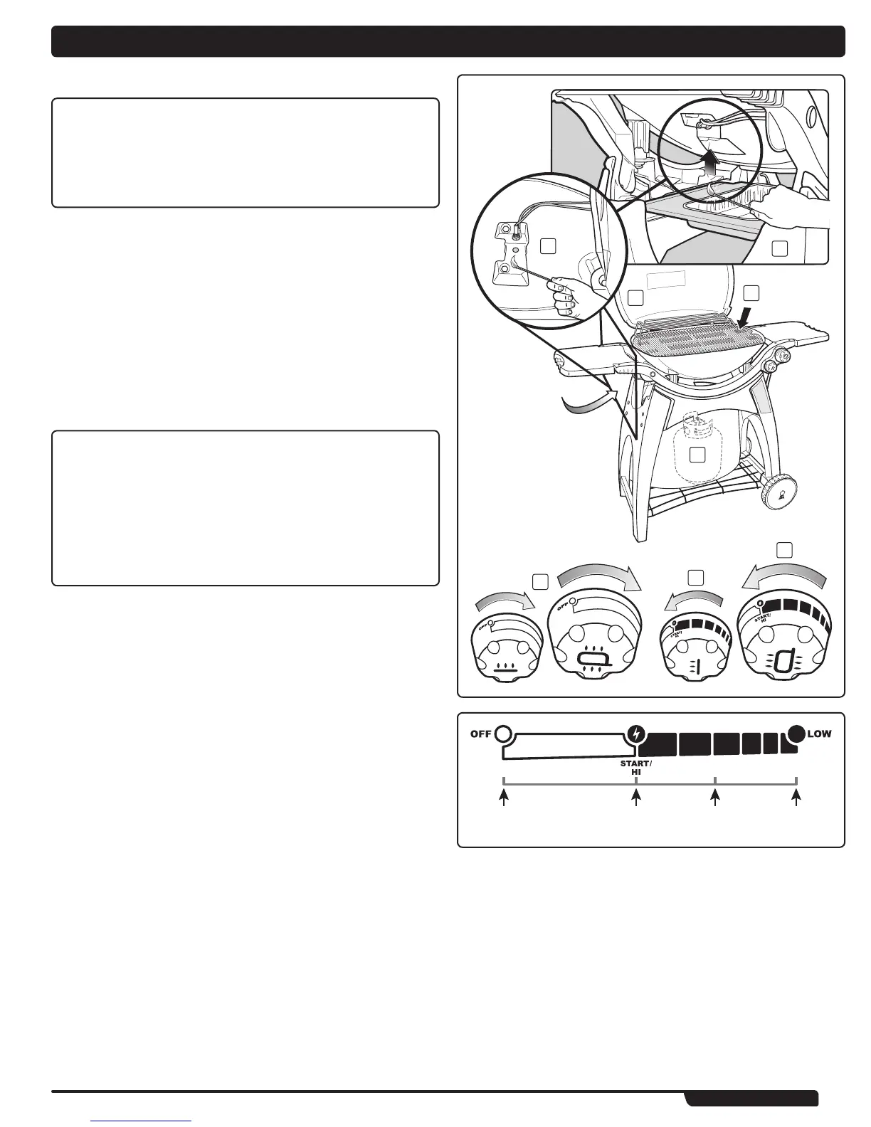 START/HI (ENCENDIDO/FUEGO ALTO). El quemador interno será encendido por