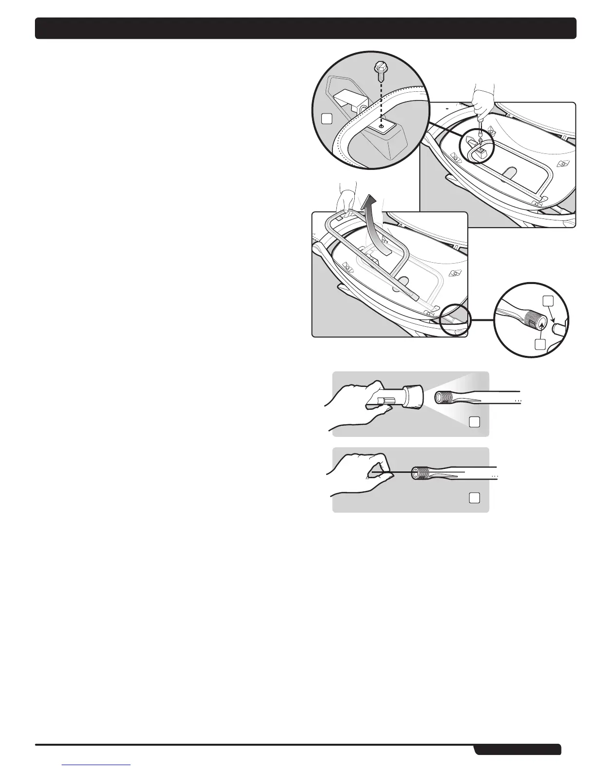 A) Look inside the burner with a torch (2).