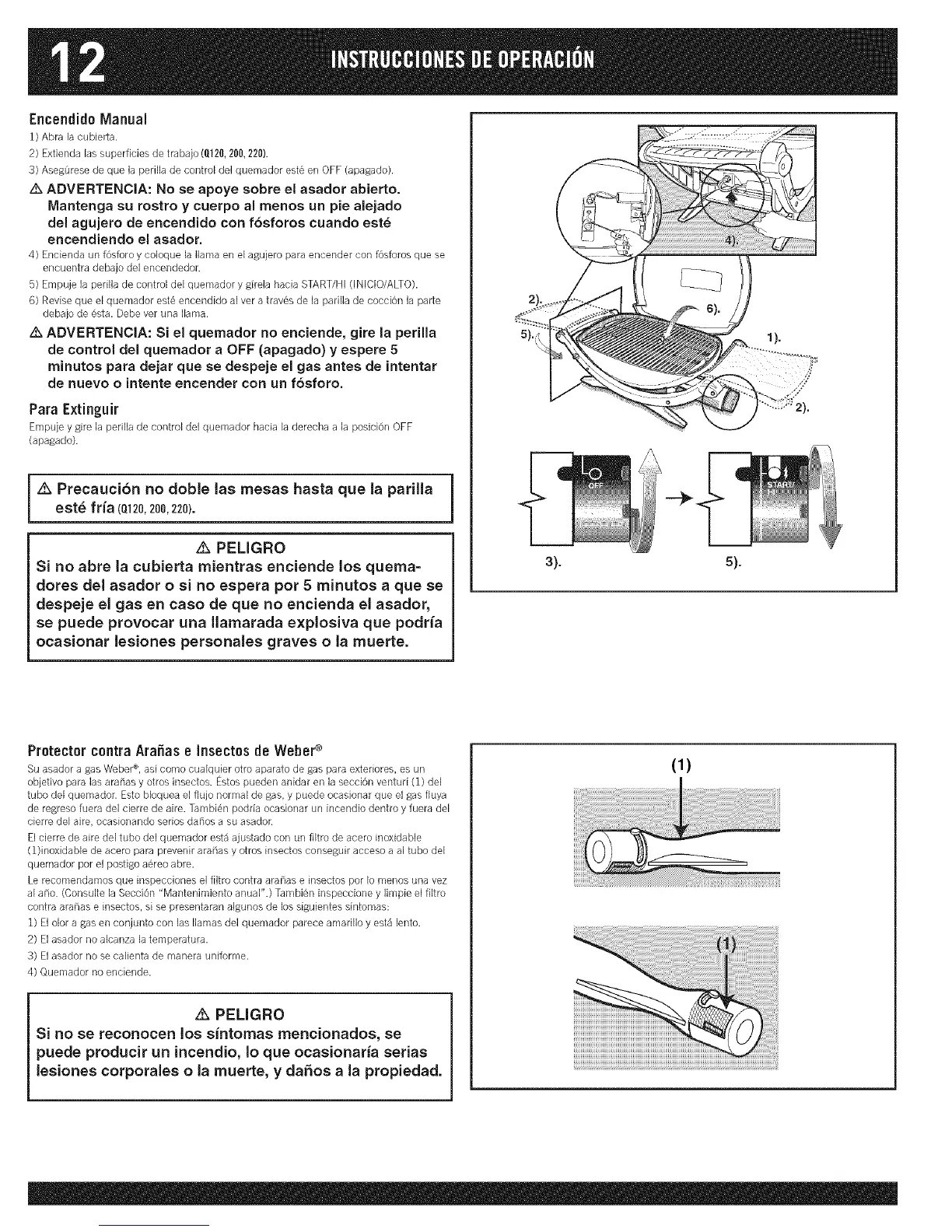 z_ ADVERTENCIA: No se apoye sobre el asador abierto.