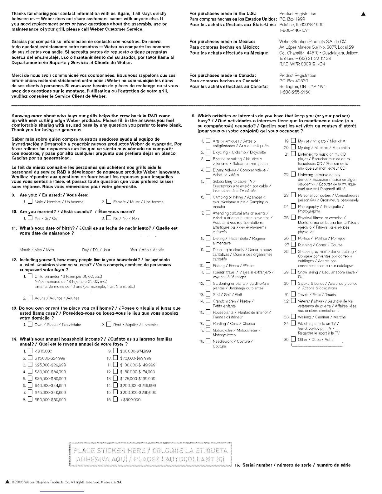 _, 82006 Weber Stephen Products Co, All rights reserved, Printedi_ USA