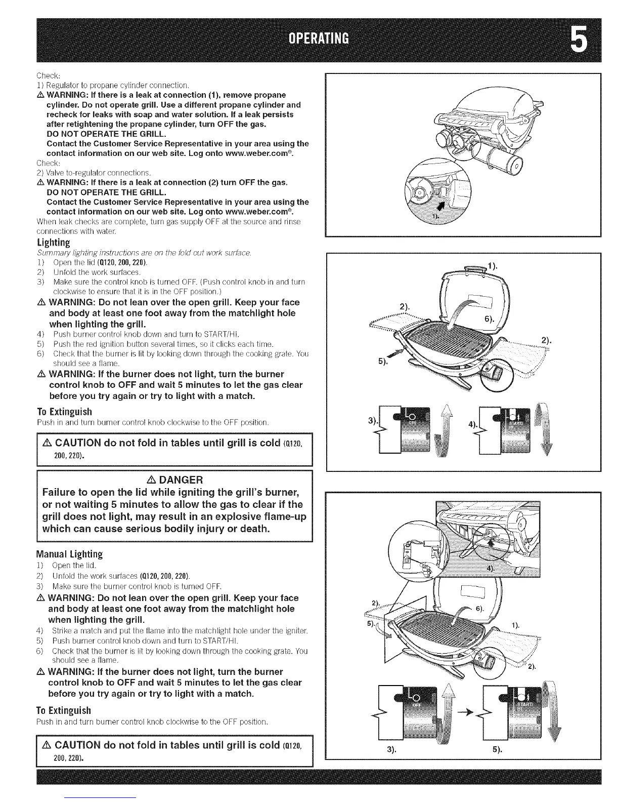 z_ WARNING: Do not lean over the open grill. Keep your face