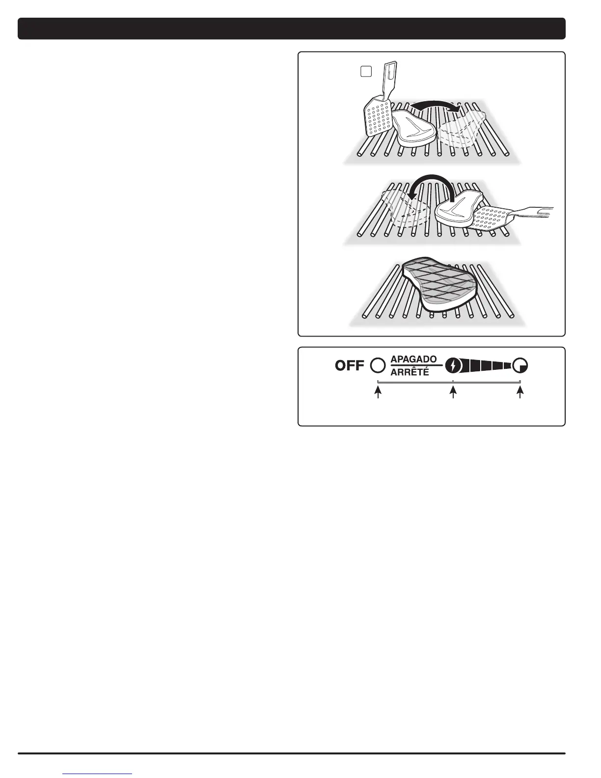 (apagado) o LOW (fuego bajo). Deje los quemadores central e izquierdo en la posición