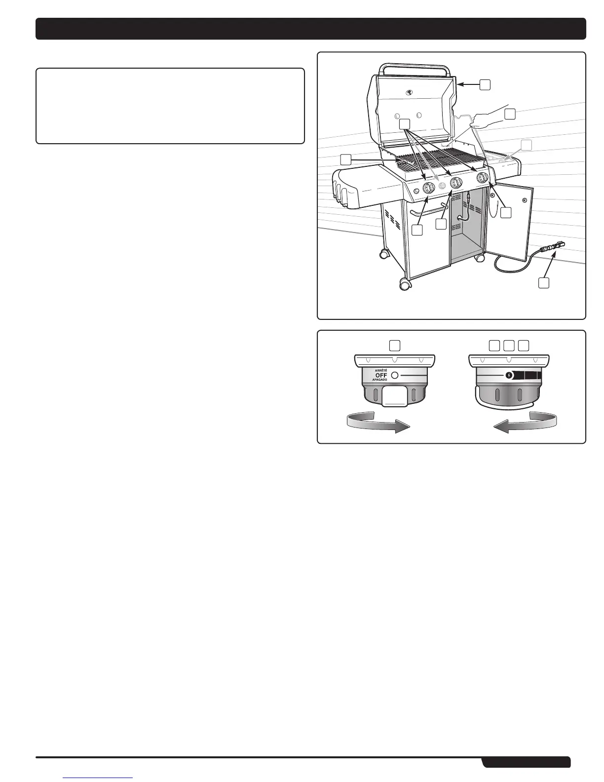 à côté du brûleur droit. Enfoncez le bouton de commande (8) et tournez-le vers