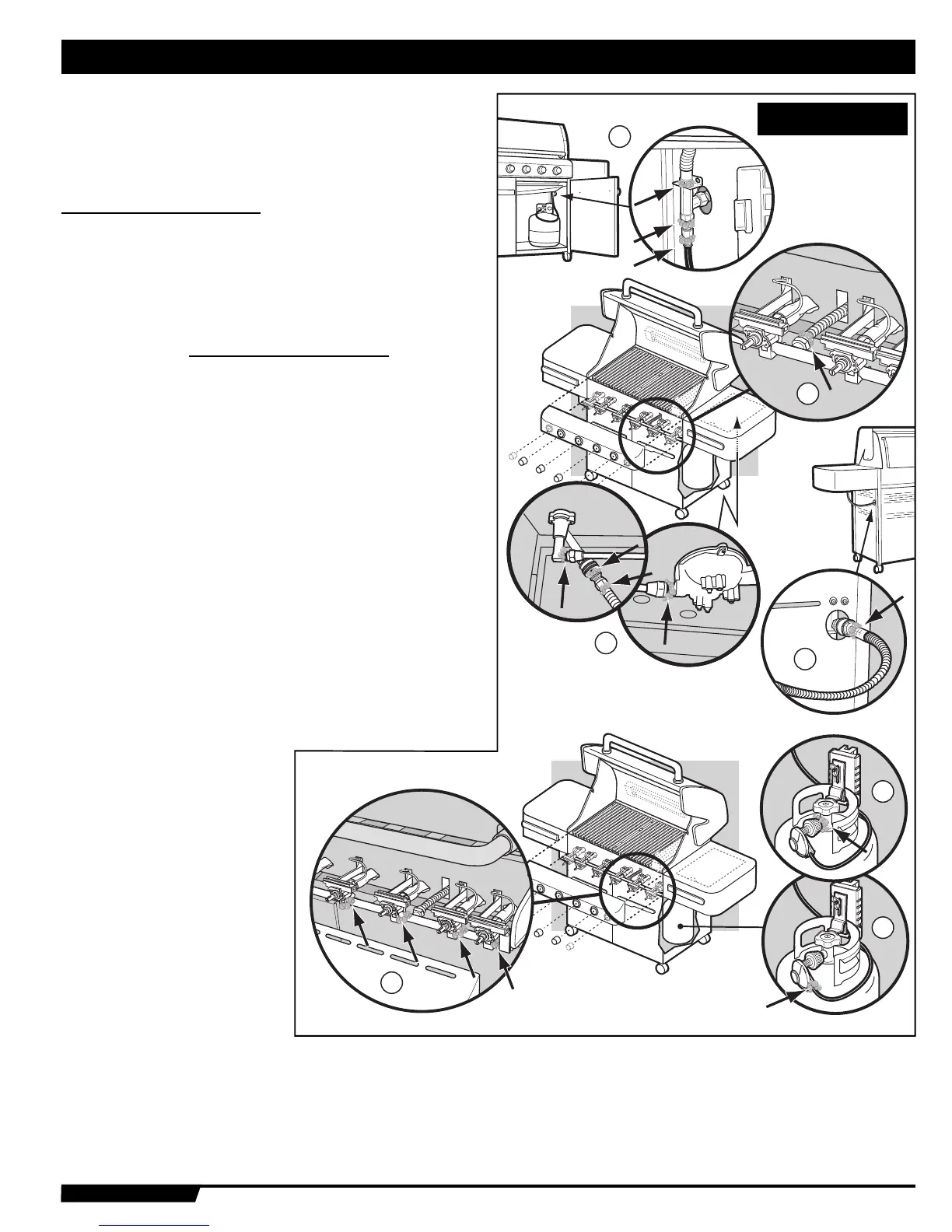 4) Side burner hose to Quick disconnect connection, side burner valve and orifi ce