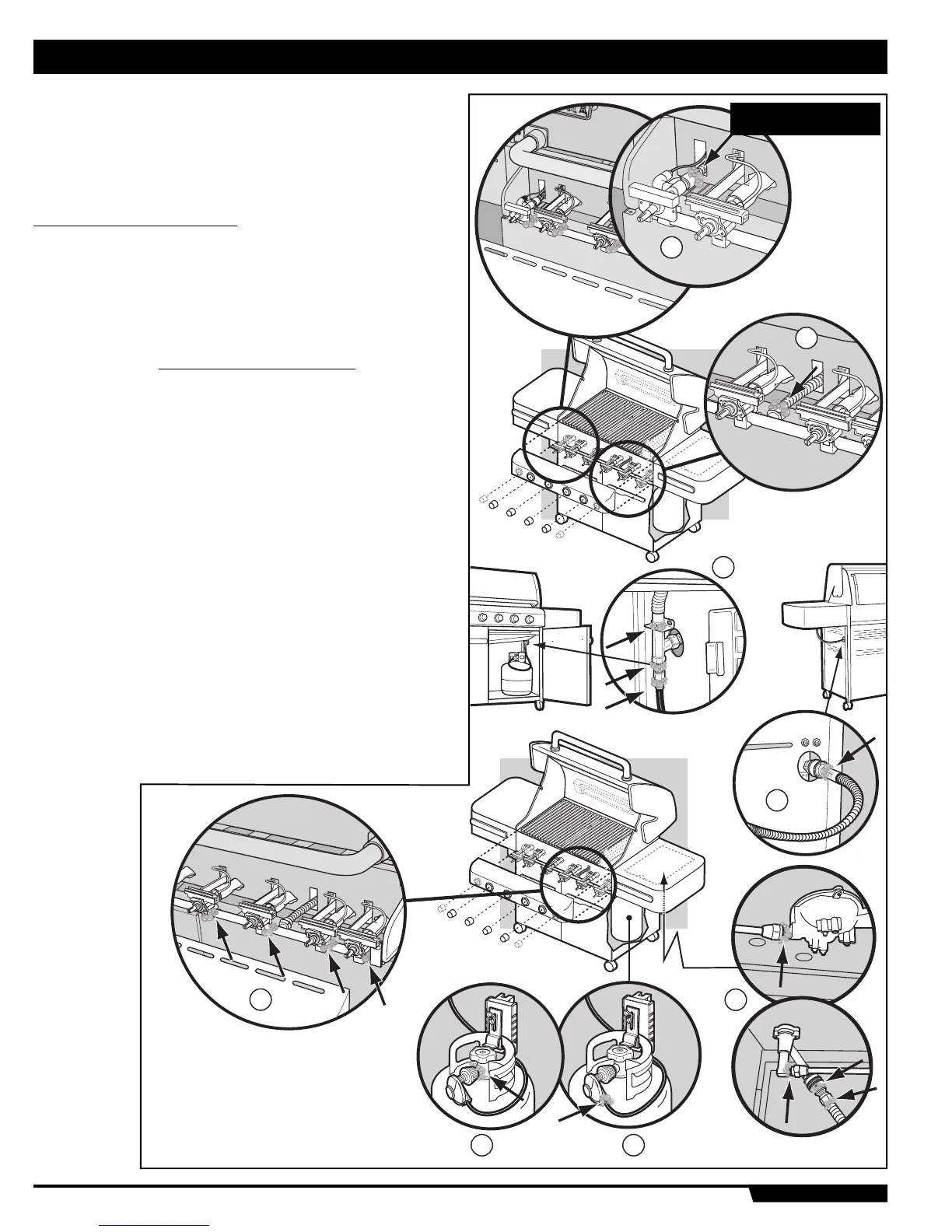 5) Side burner hose to quick disconnect connection, side burner valve and orifi ce