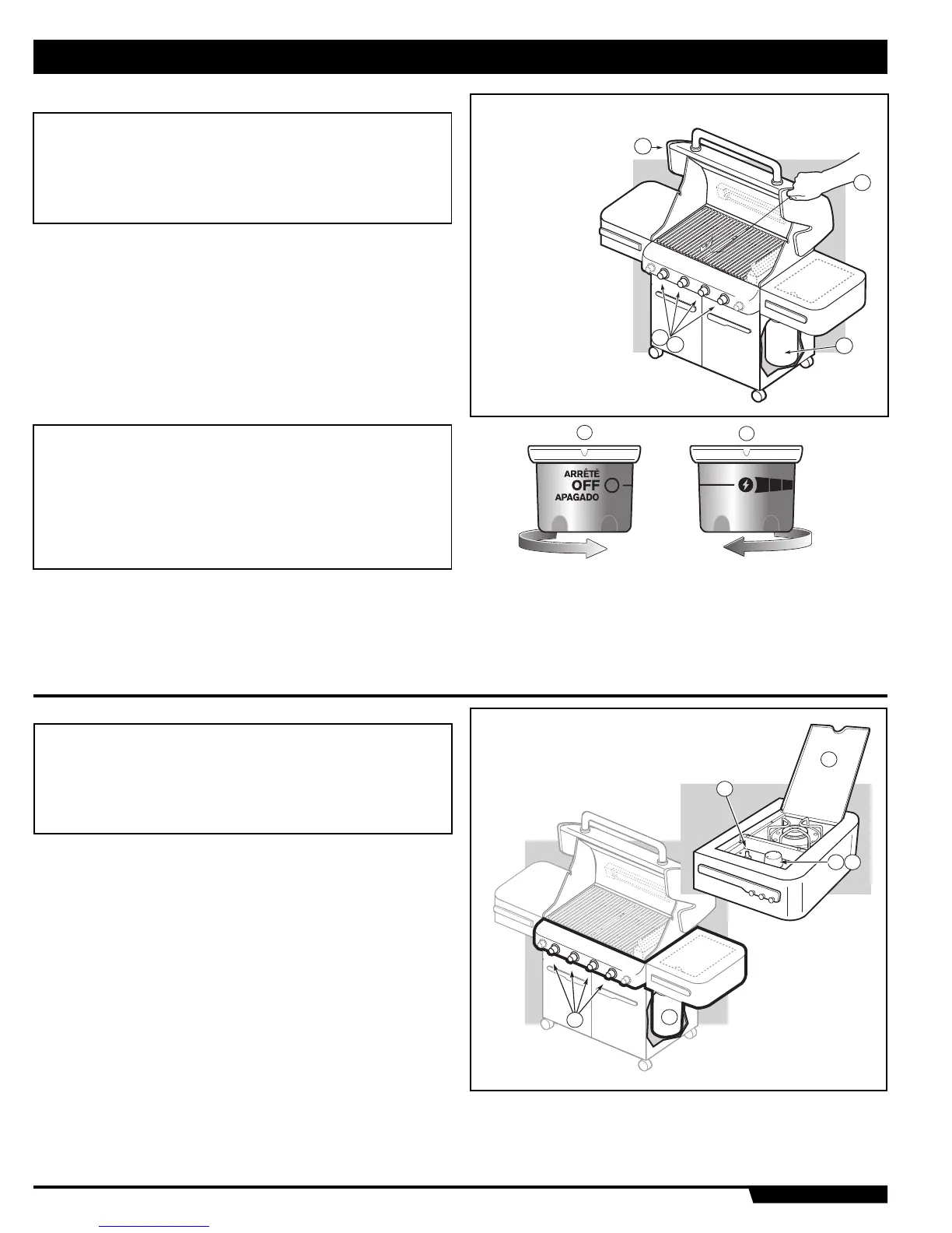 4) Presione y gire la válvula de control del quemador lateral a la posición “HI” (fuego