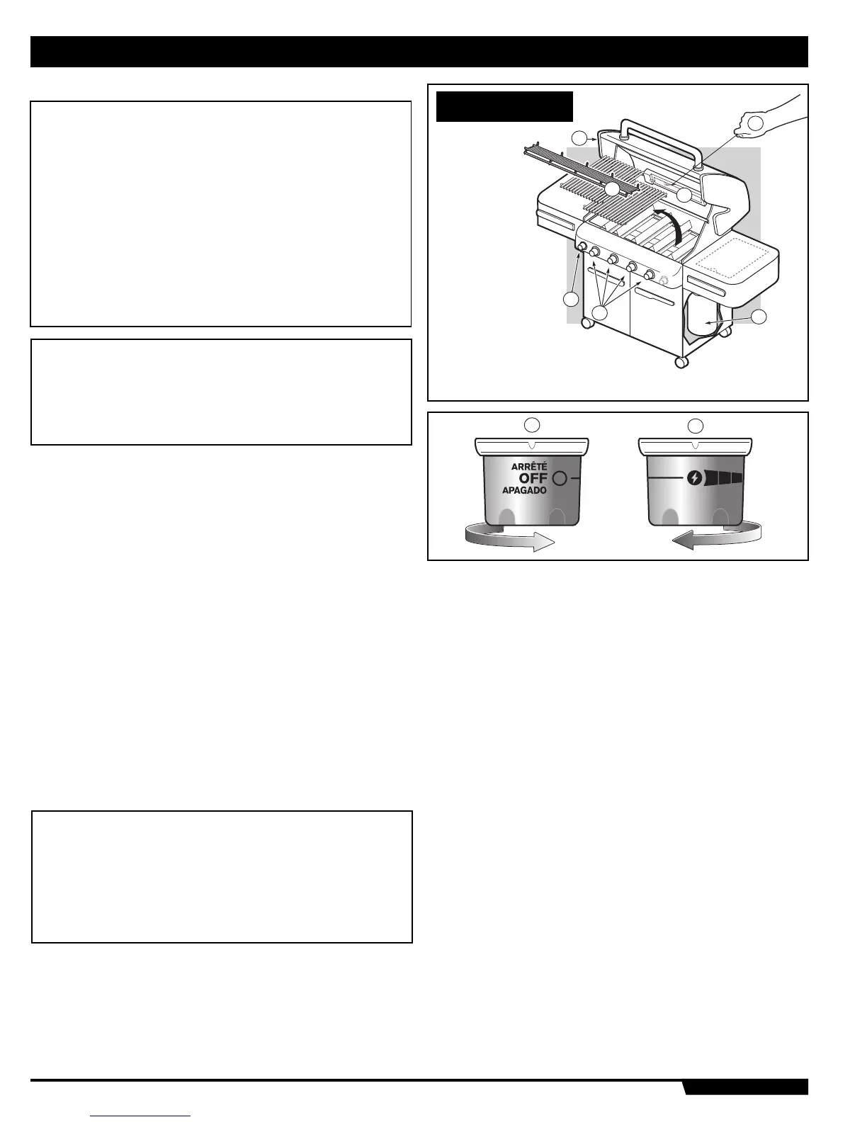 7) Presione la perilla de control del quemador del asador giratorio y gírela hacia