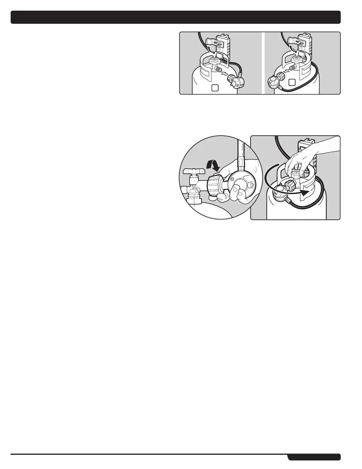 Note: This connection tightens clockwise and will not allow gas to flow unless the