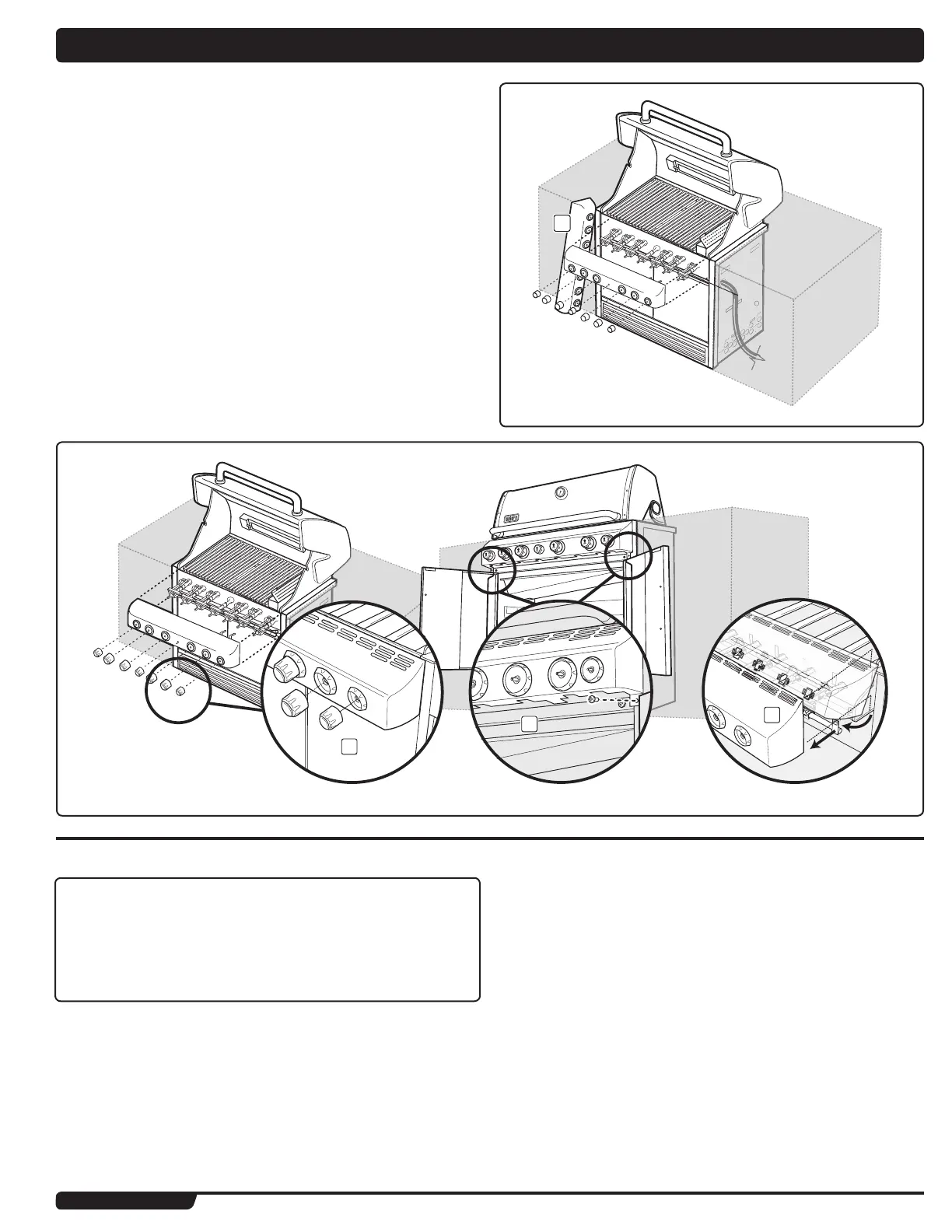 Rest the control panel against the left side of the grill (A) exposing the valves, burners,